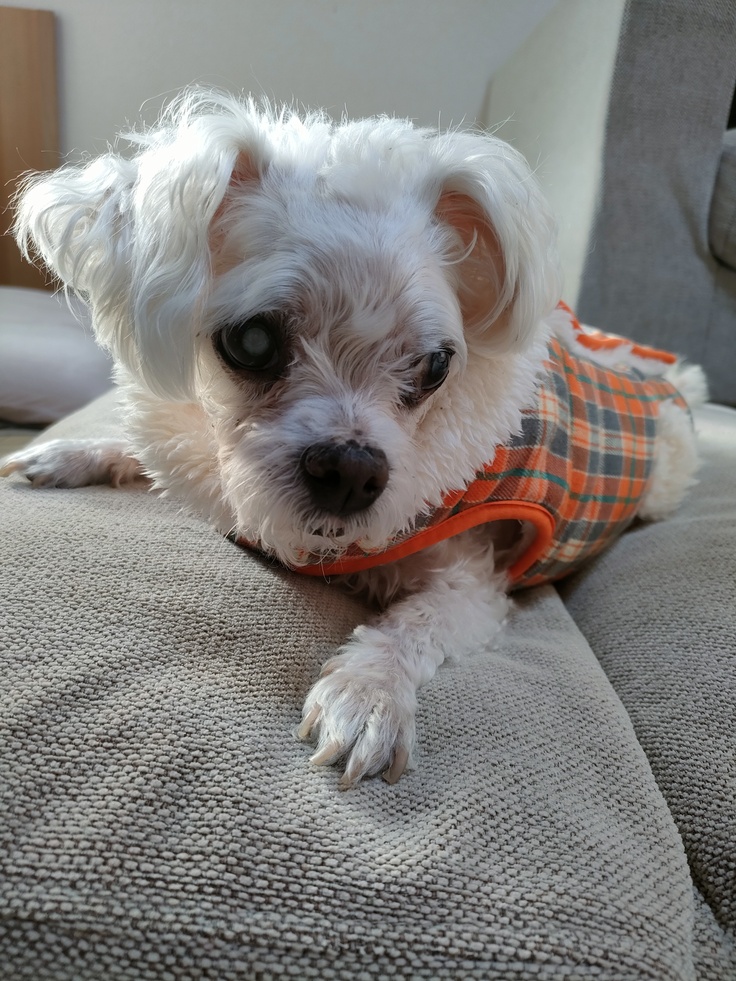 元気になりつつありますが、目が見えないため、活発さはないですが家の中をゆっくりと散策しています