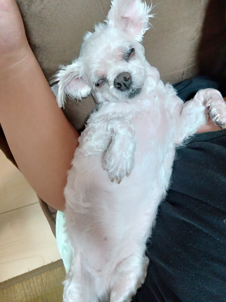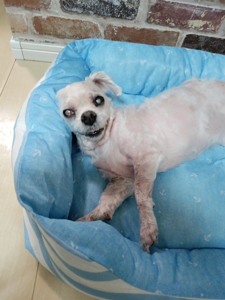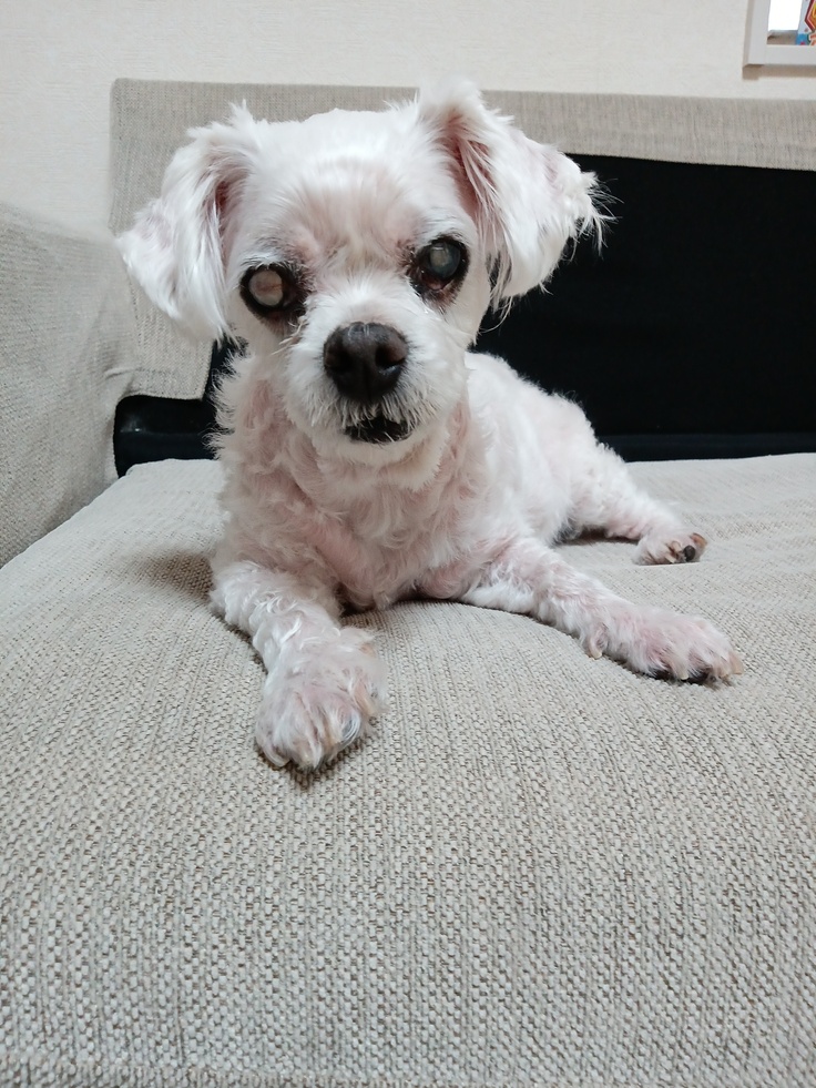 外に出かけると、盲目なので怖がってあまり歩こうとしませんが、家の中では歩いてお散歩しています。