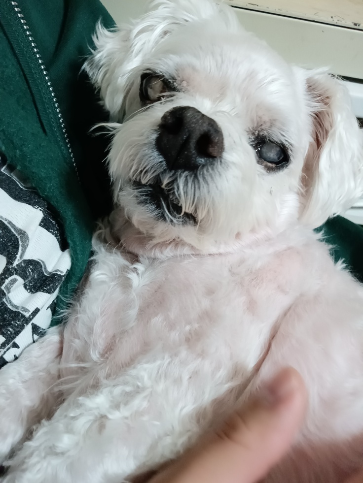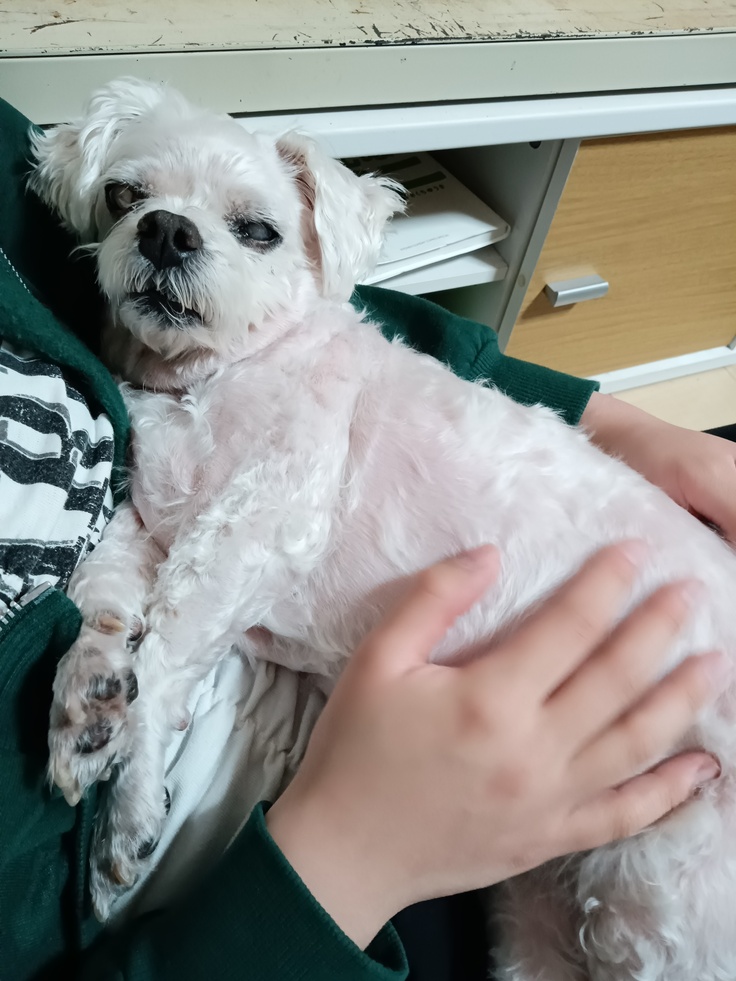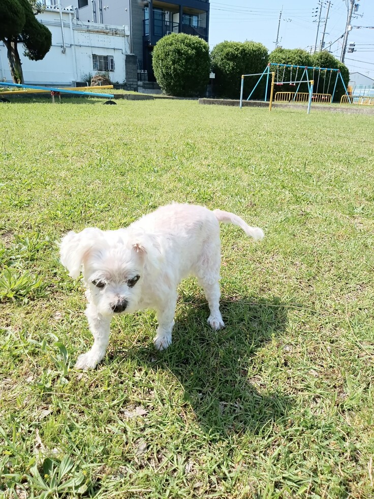 天気の良い日にお出かけしましたが、盲目の為やはり怖がってあまり歩きません。お散歩は大好きだったので外の匂いでも気分転換できたかな