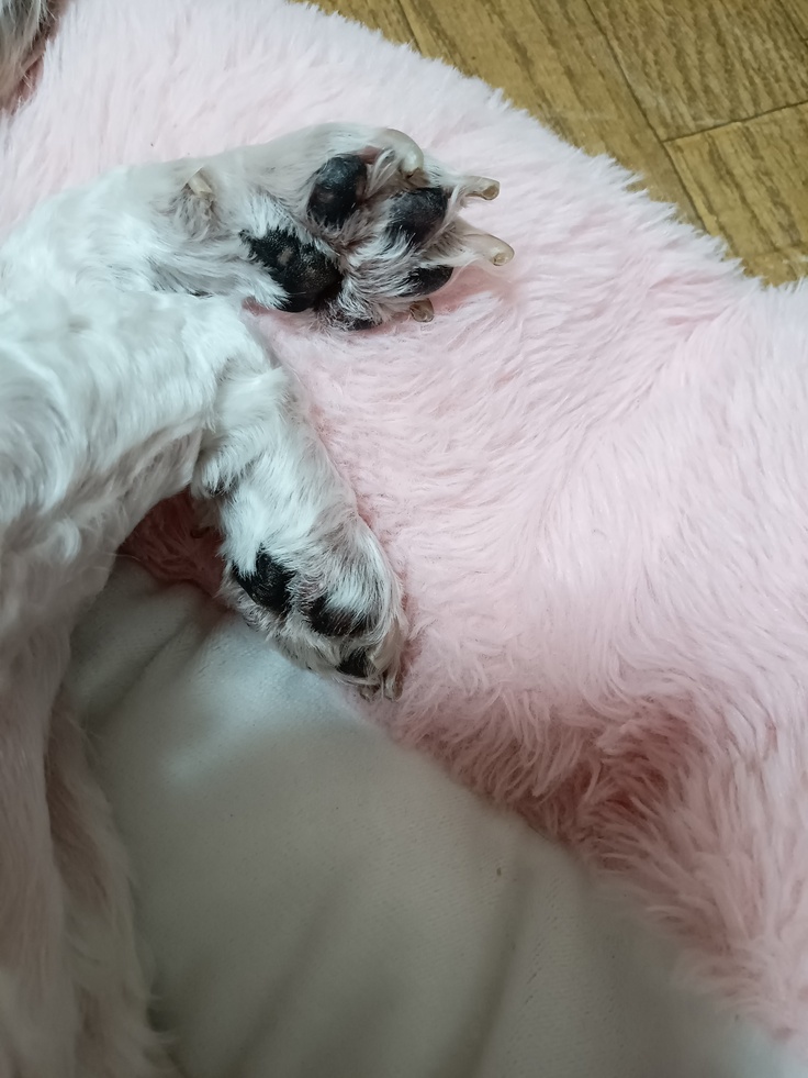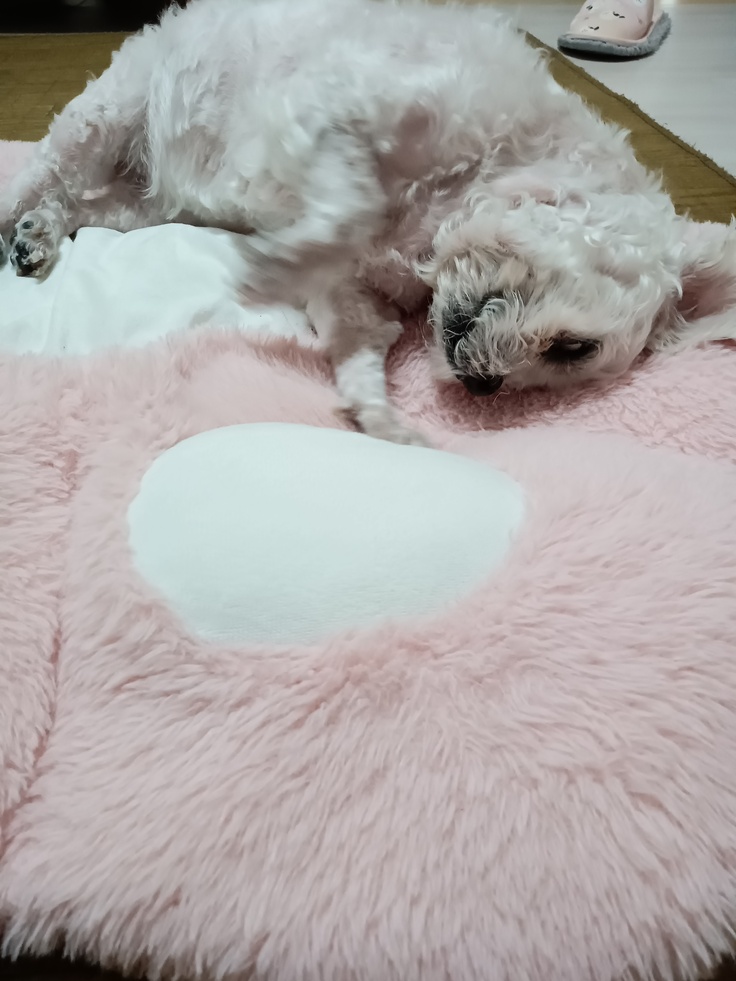 自分の好きなマットで寝ながらここ掘れワンワンしています(笑)