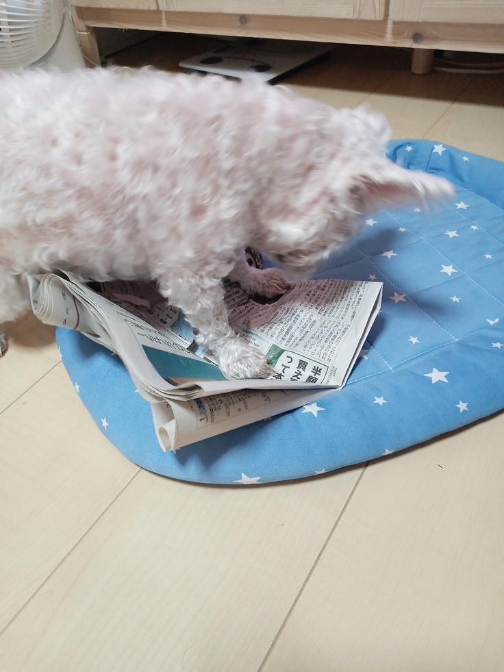 たまーに、新聞紙に穴をあけて遊んでいます。