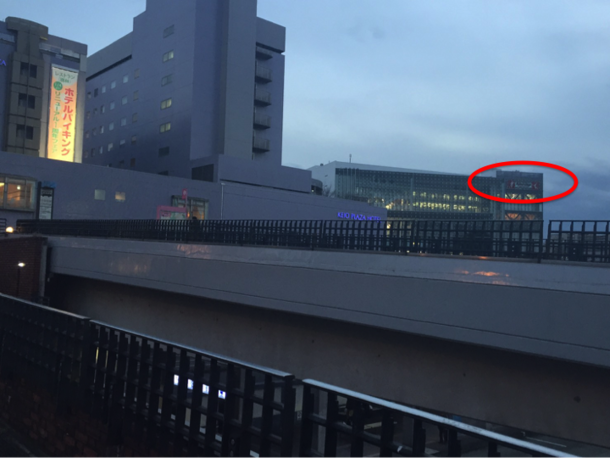 多摩センター駅の南口を出ると右斜め前方向にニューシティ多摩センタービルが見えます。赤マルのところがE's CAFEができる場所です。