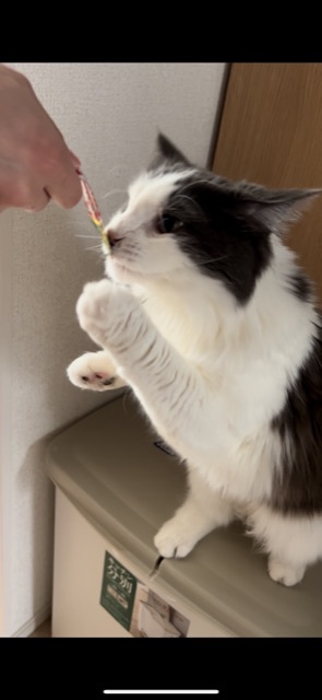 COOちゃんは食欲旺盛に戻ってきており、チュールを2匹で取り合います😂