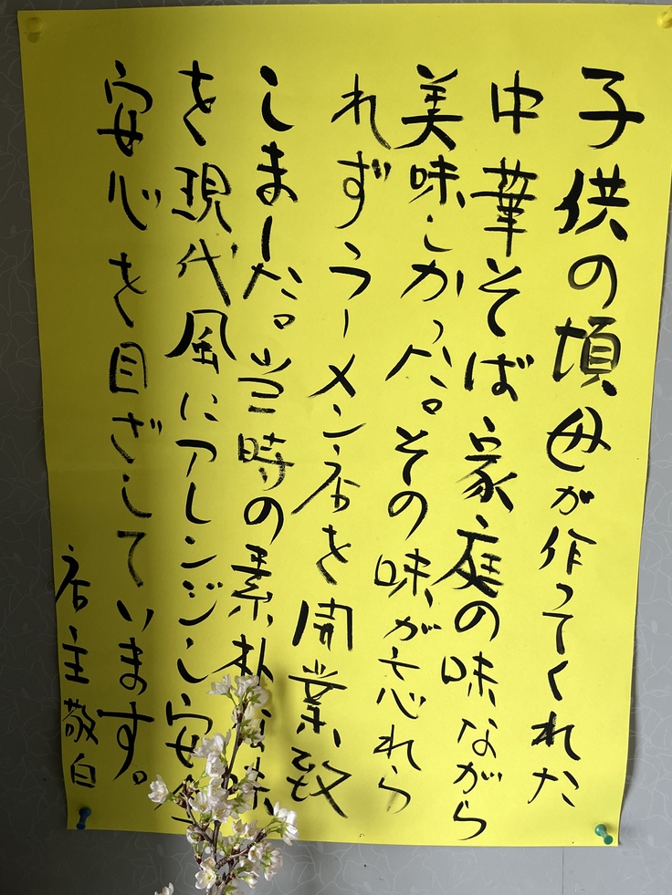 そんな父の背中をみて育った私は、現在、コロナ禍、そして物価高騰により、父が築き上げてきたラーメン店が経営困難になりつつあるため、今まで頑張ってきた父を『手助けしてあげたい』と思い、ラーメン店を引き継いで行きたいと思っております。