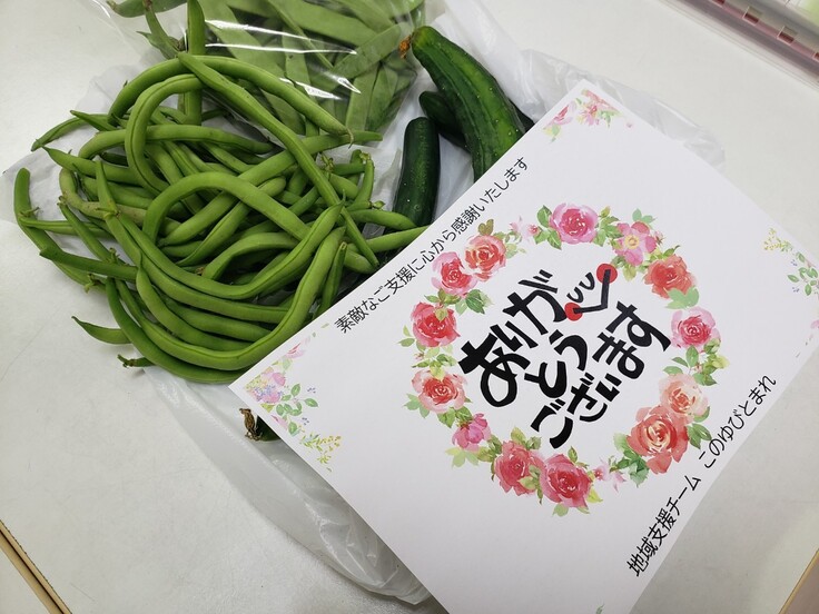 私たちの活動を知り、サロンで使ってとお野菜の差し入れを頂きました。