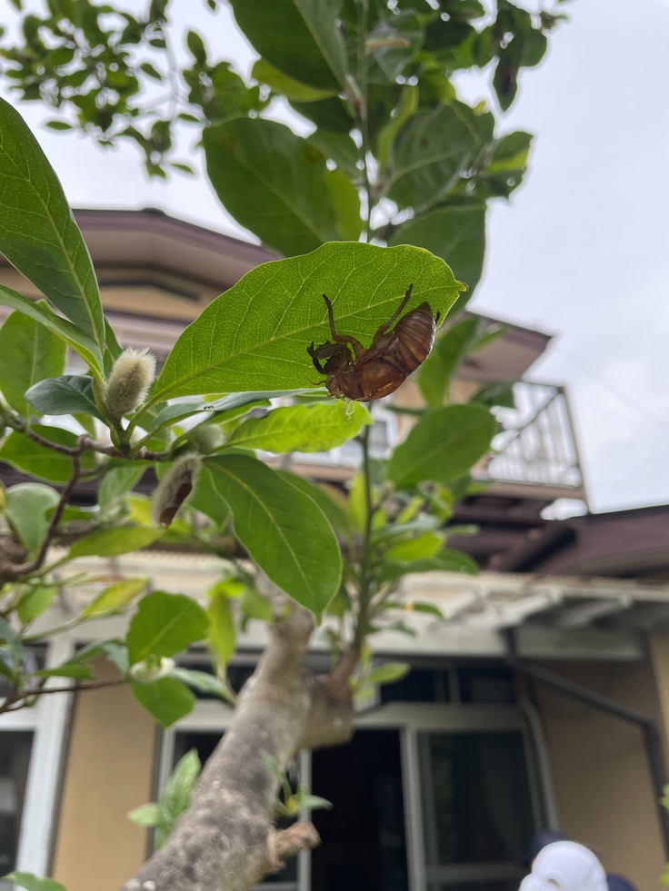 見上げた空にセミの抜け殻。