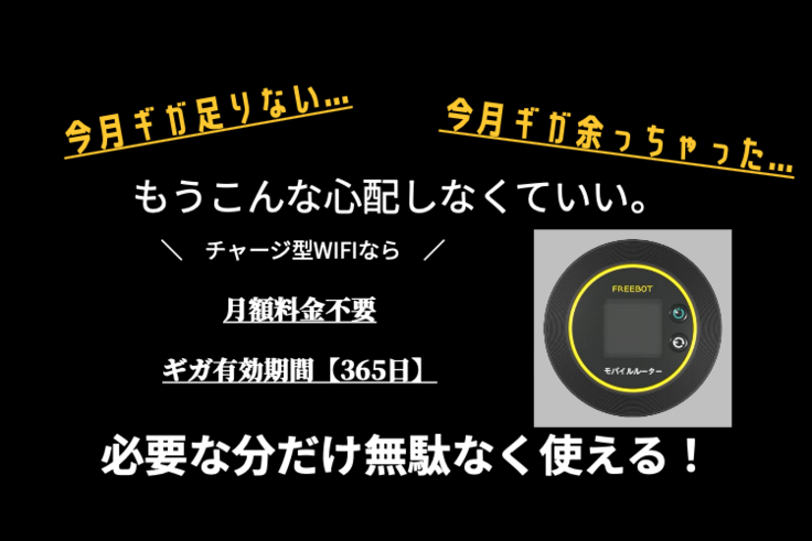 【WiFi】ギガ付きモバイルルーター!月額料金不要!