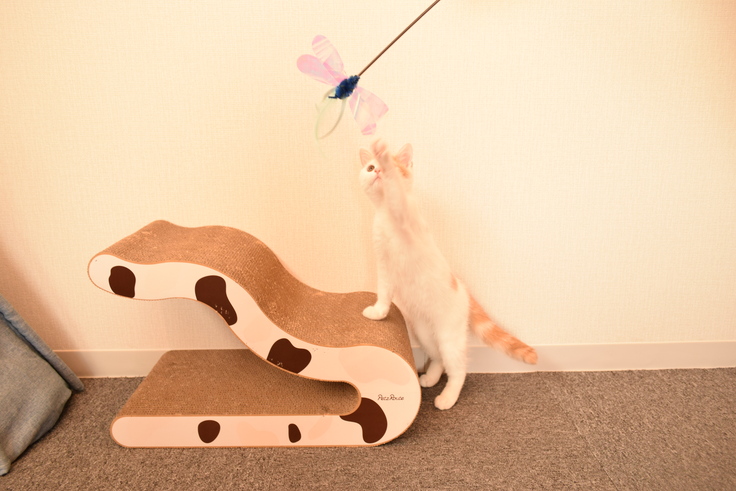さて、そんな花ちゃんも成長と共に塩対応を覚えてしまい、おもちゃとおやつ以外は基本キャットタワーの最上段で過ごすツンツン猫に仕上がってしまいました。