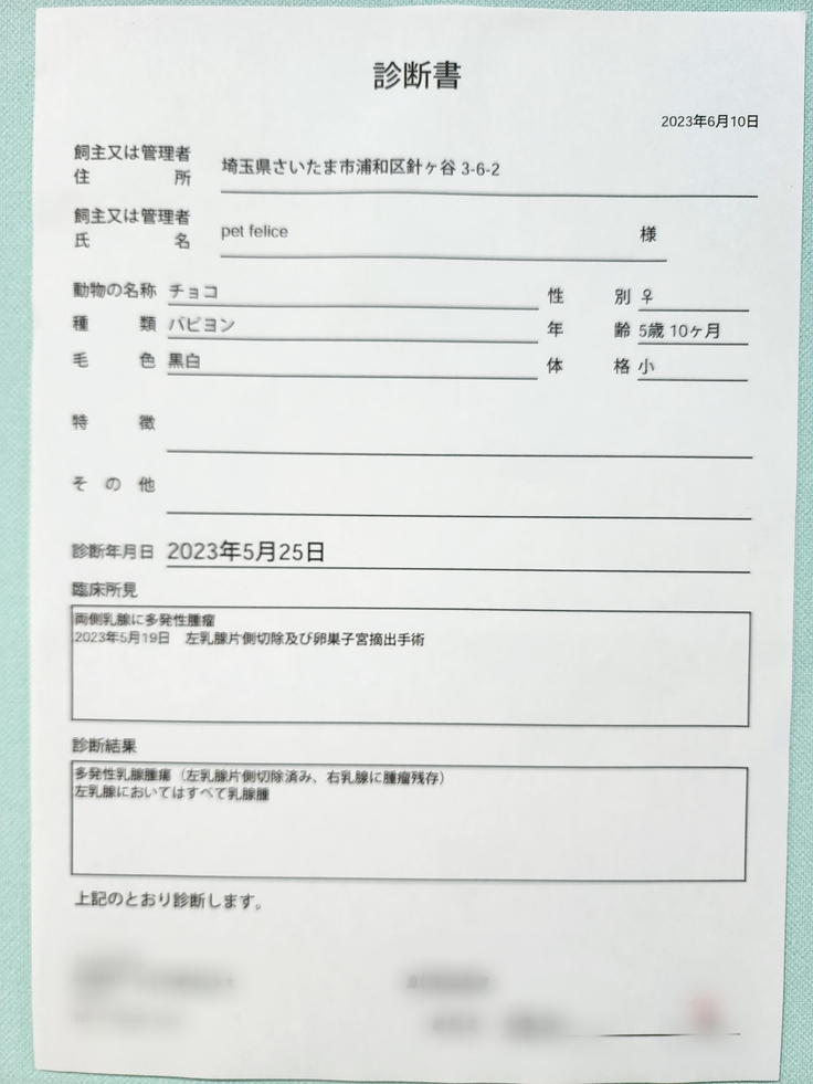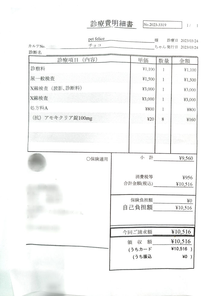 ▶︎ 4.掲載している資料についてページ上に掲載している診断書や診療明細書などの資料は全て動物病院から掲載の許諾を得ております。