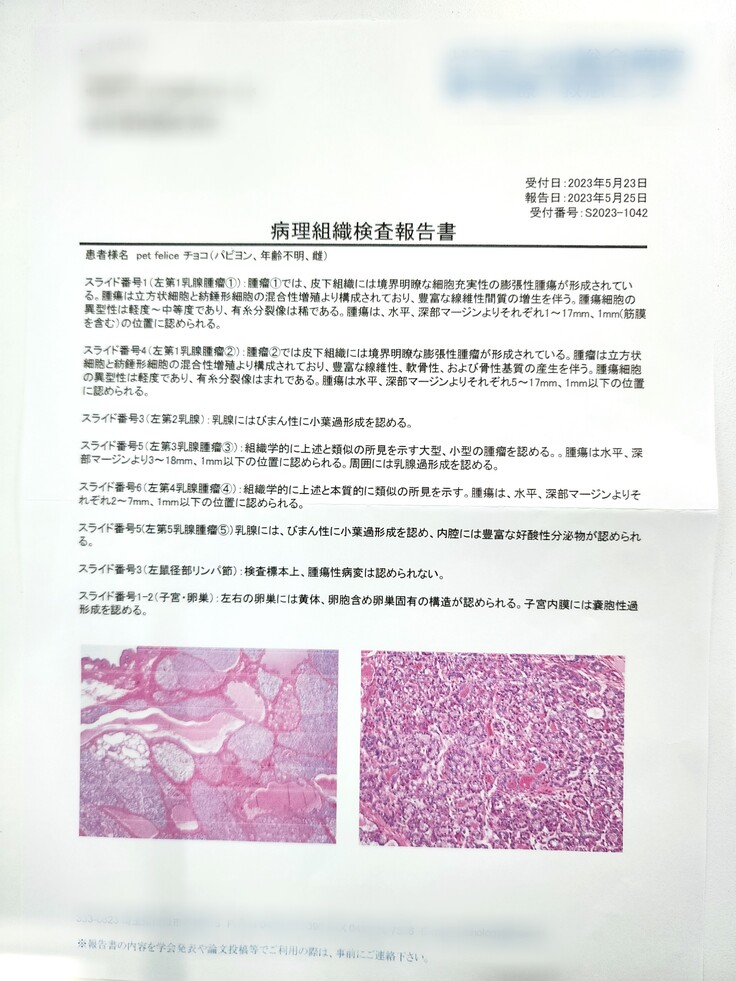 獣医の先生から、悪性の可能性が高いと言われていただけに本当に安心しました!!