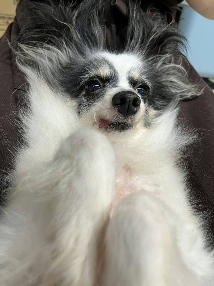 今日はスタッフのお膝でゴロゴロするチョコちゃん!