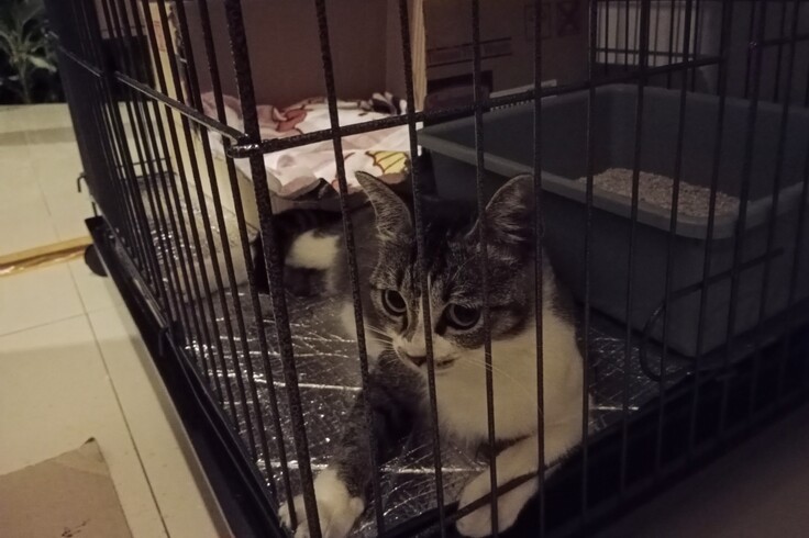 部屋には猫パルボを完治したばかりの家猫がおり部屋に入れての保護は出来ず、日本に住む方に相談をしアドバイスをいただき、3月末に部屋の外にゲージを買って置いて保護することを決めました。