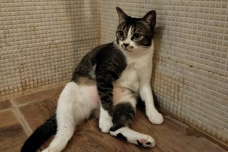 テナントのシャッターの外で暮らしていた外猫。猫風邪で病院に連れていき治療を受けさせました。