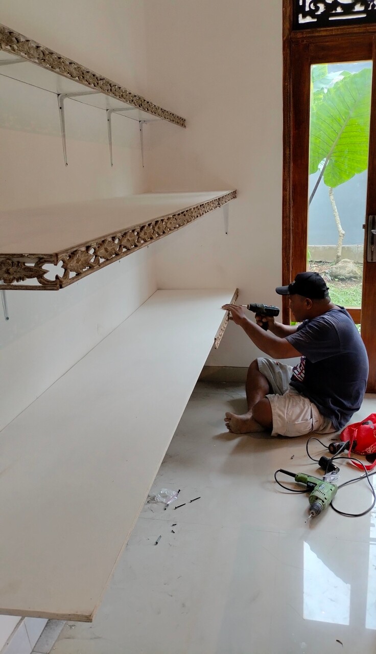 貰い、壁は全部塗り直して、壁一面に取付けてあった汚い飾りクローゼットを全部取り外して貰って3段棚を作って貰いました。