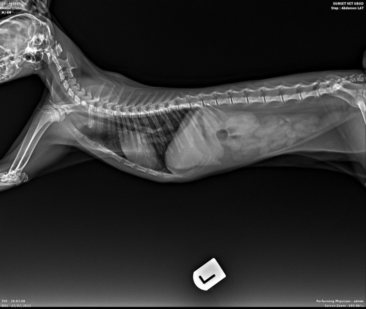 レントゲンを撮ってもらった結果、胃の中に異物が残っていて胃から腸まで下りれず、7月29日に開腹手術を致しました。