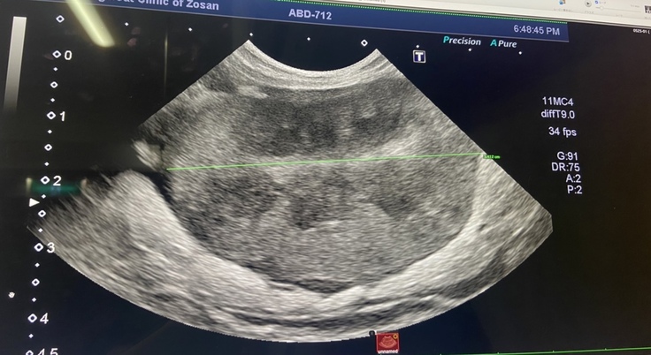 腹水が少量しか溜まっていないため、採取できずPCR検査で確定診断はできませんが、
