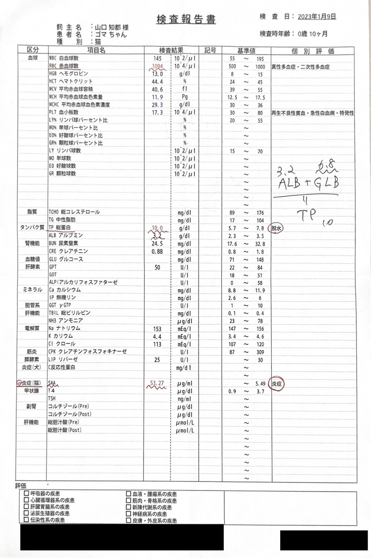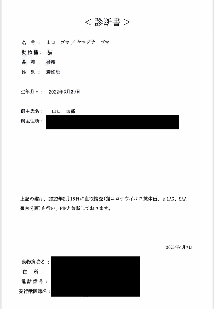 おおよその金額は把握していましたが、ゴマはFIPの混合タイプで腎臓の腫大の症状もあり