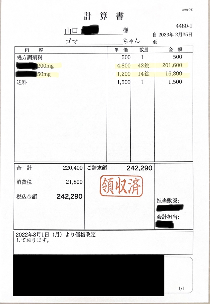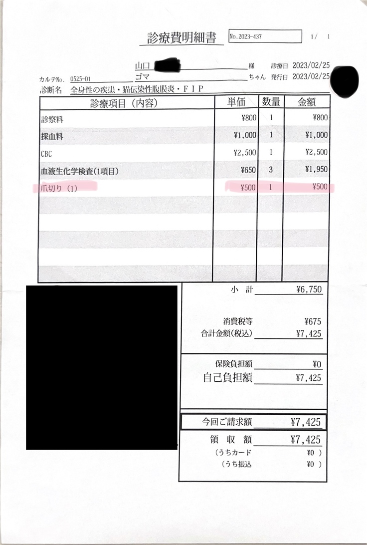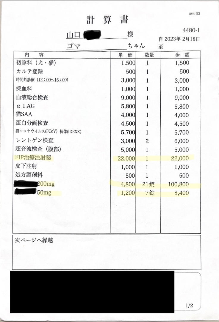 🌼FIPと診断がついてからの累計額