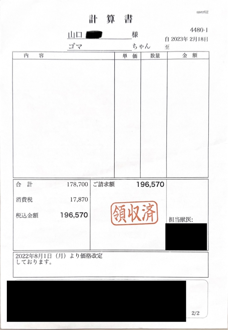 2023年2月分の動物病院からの請求額についてご報告いたします。