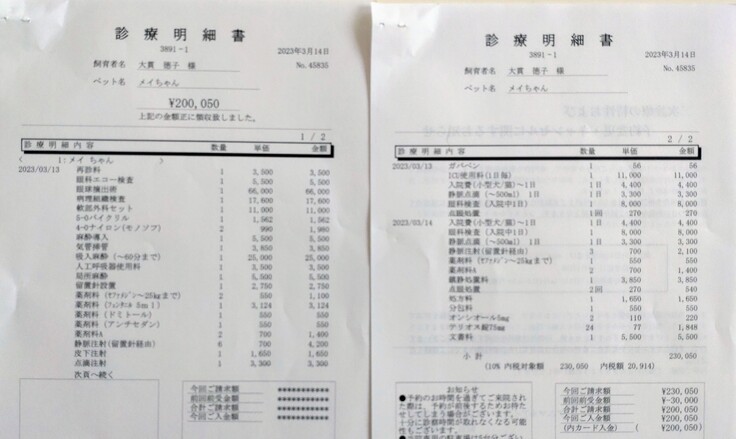 ページ上に掲載している診断書や診療明細書などの資料は全て動物病院から