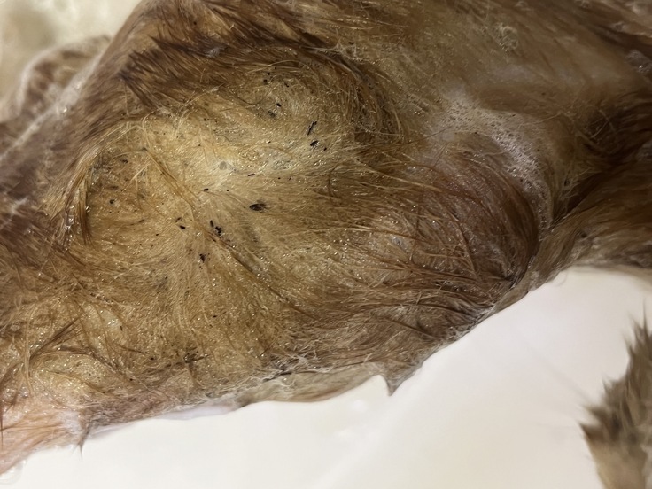 ざっと100匹はノミが体を這い回っていました。。。😭