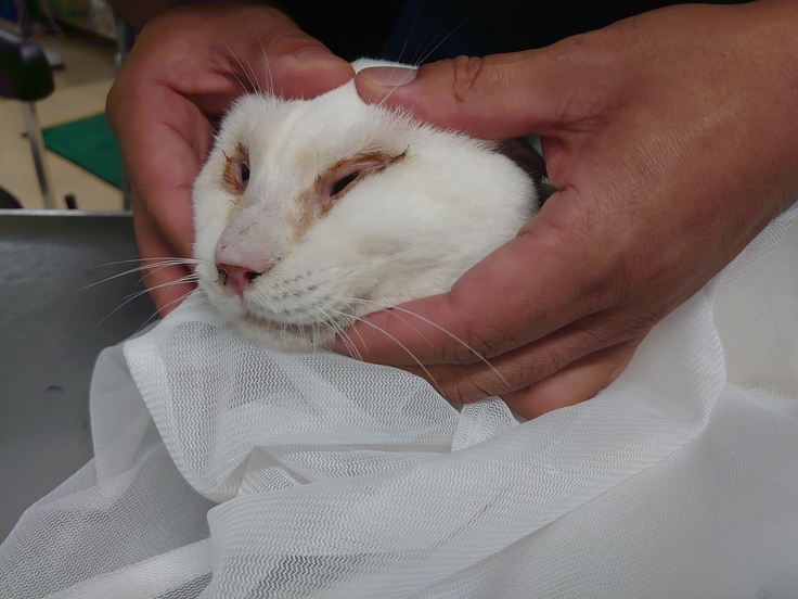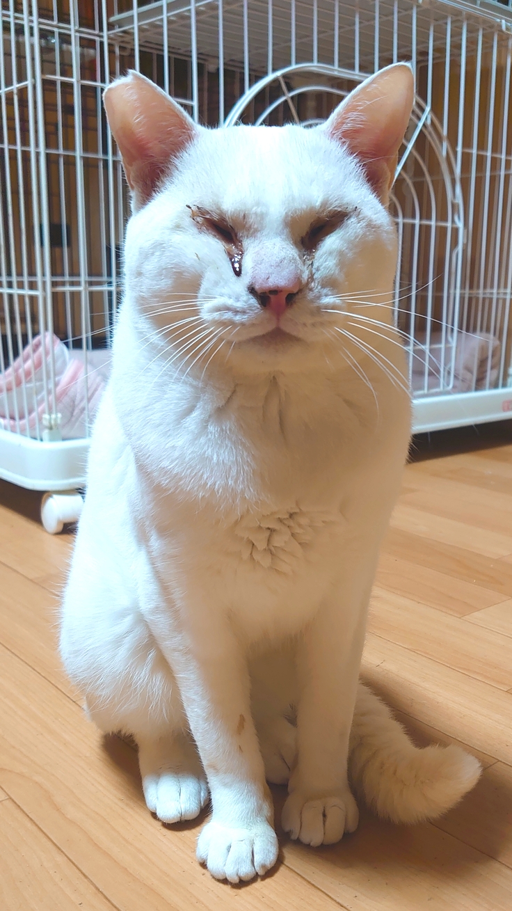 目ヤニがひどいせいでとても状態が悪そうに見えるが