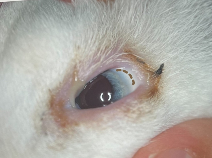 睫毛や眼の周囲の被毛が眼の中に入ってしまうことが多く、その刺激によって角膜に傷ができたり炎症が起こりやすくなります。
