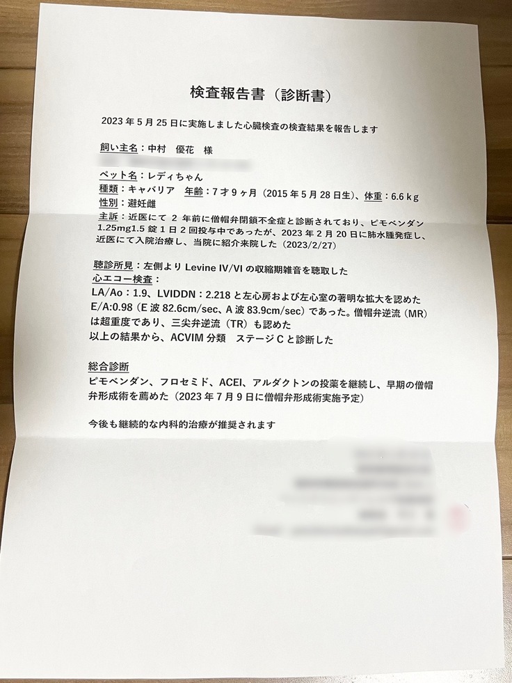 少しの心臓肥大あり僧帽弁不全症と診断。