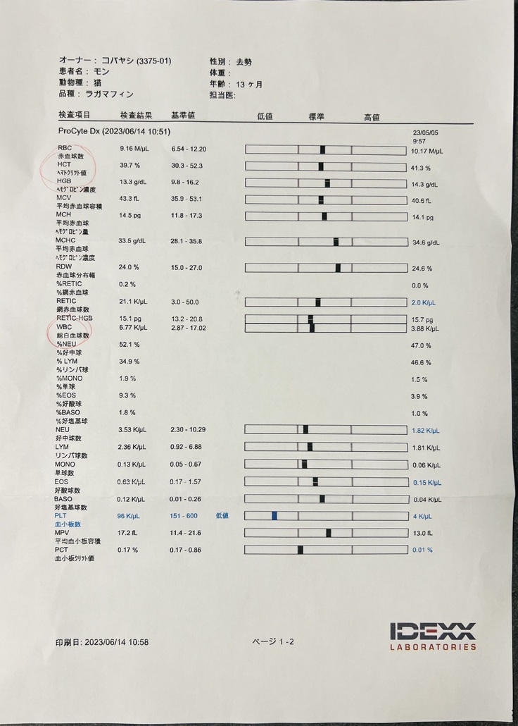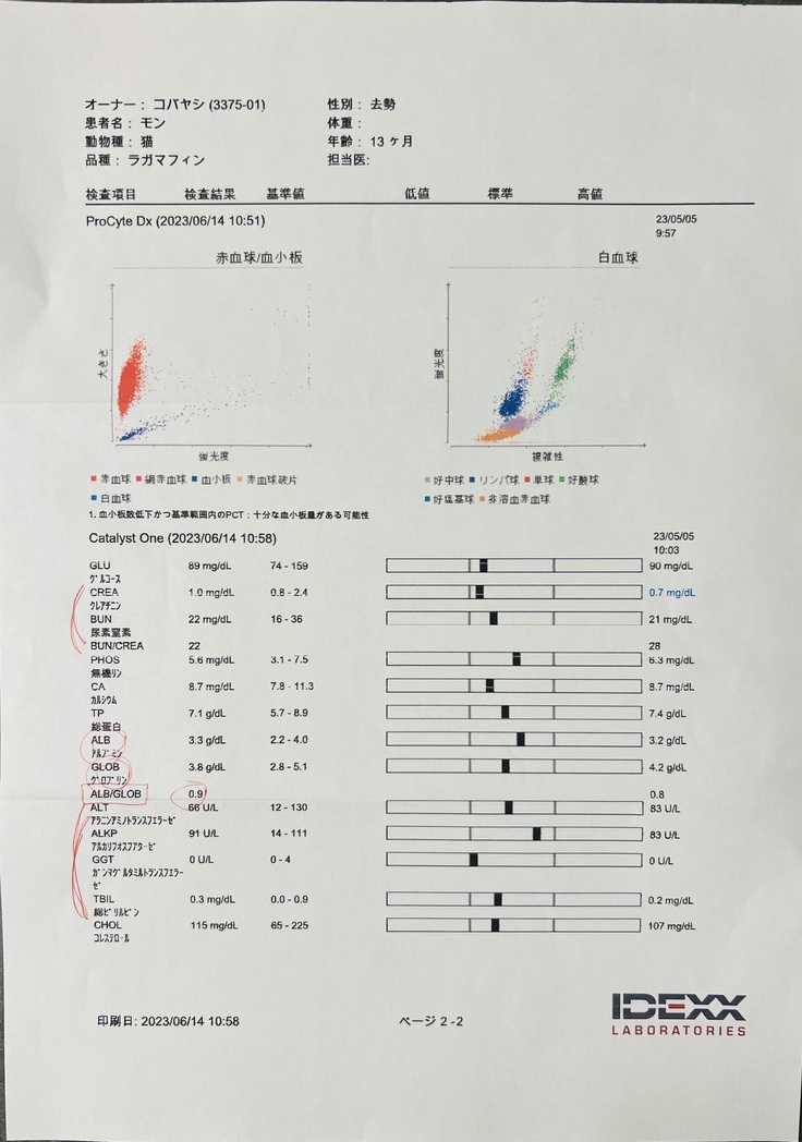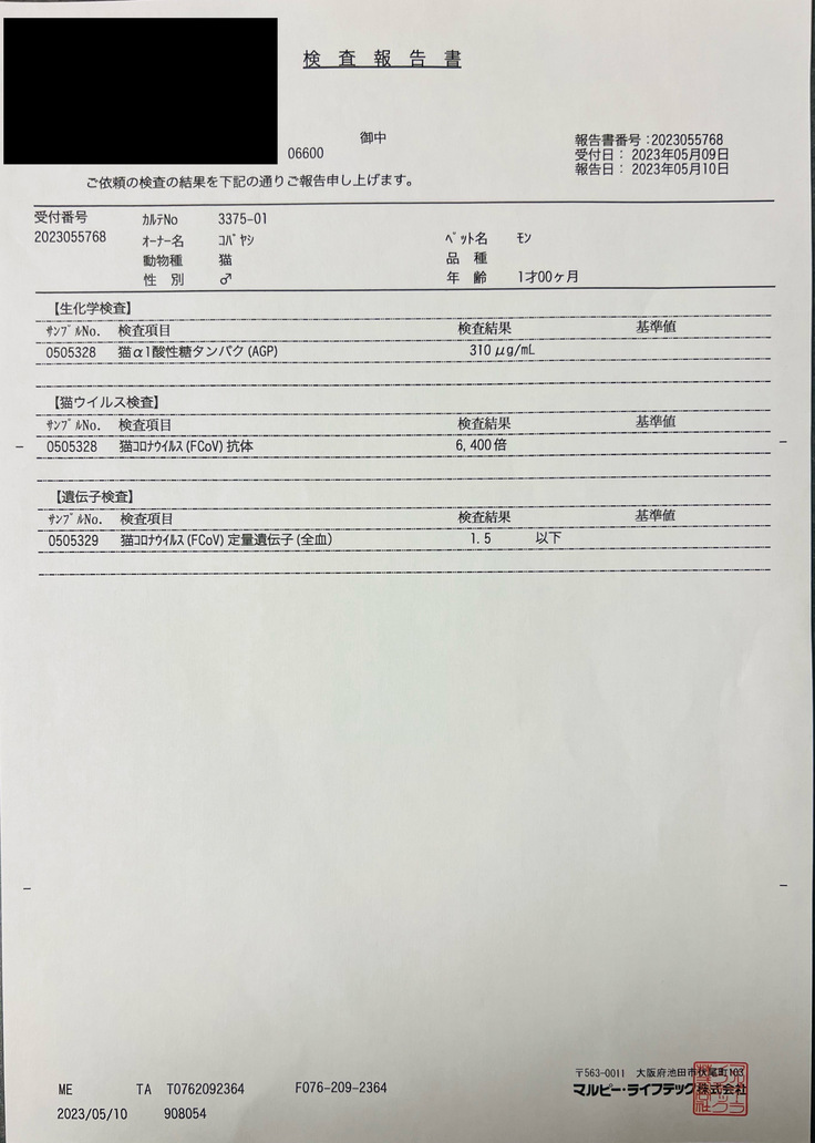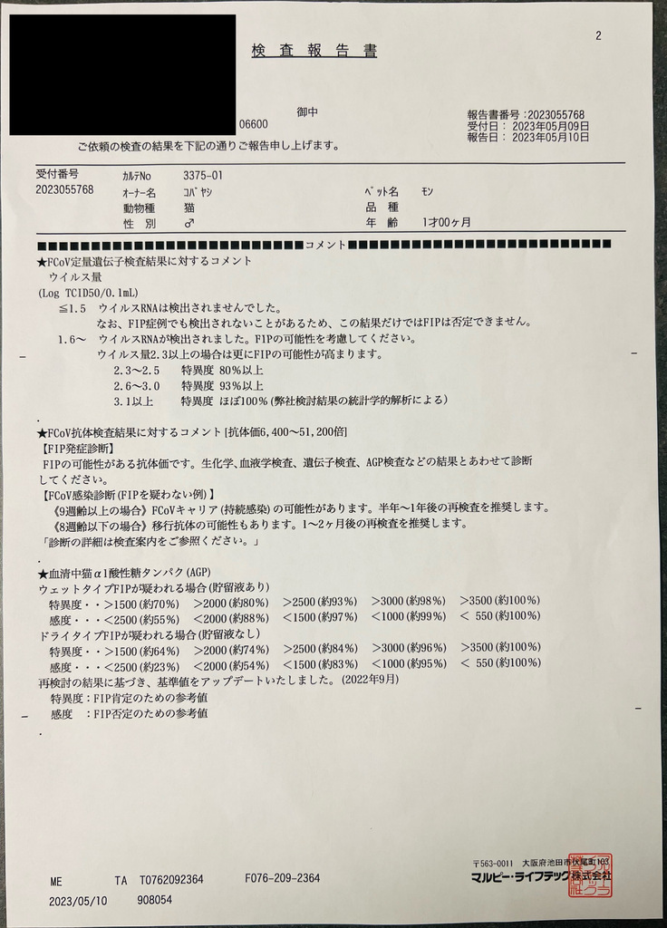 投薬終了前の検査報告書を、今日までいただいていなかったのでこちらに添付しておきます。