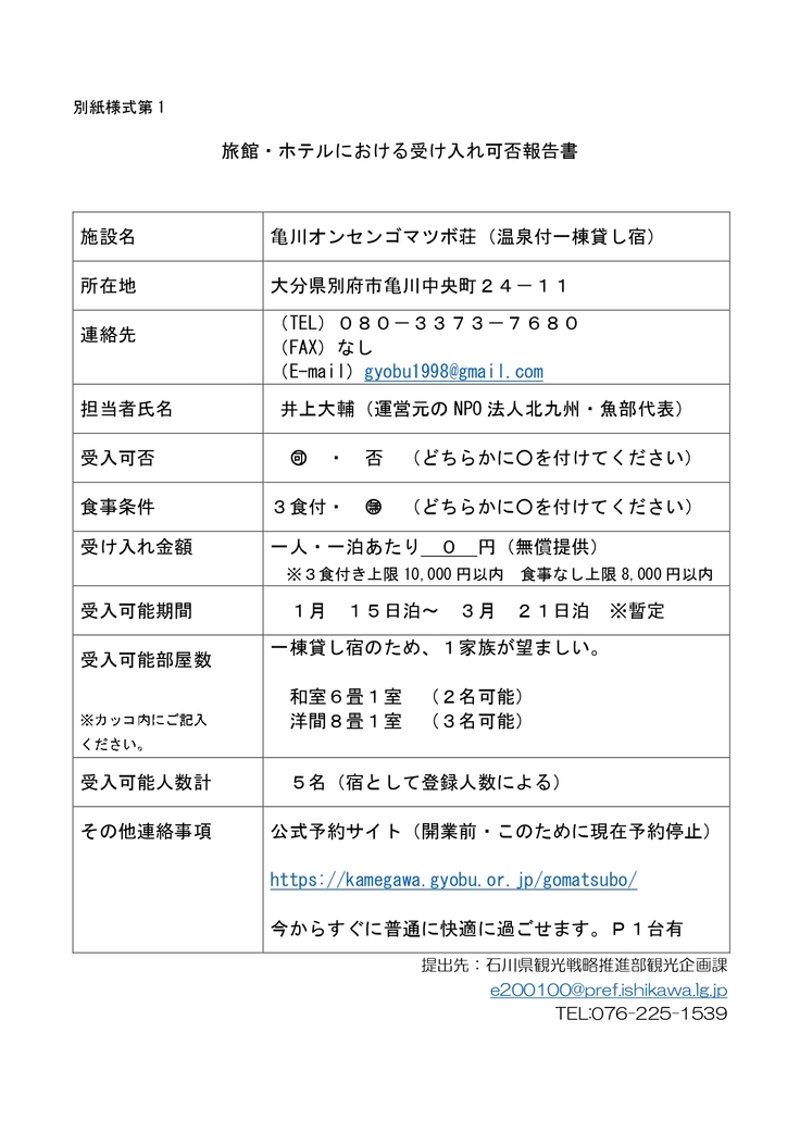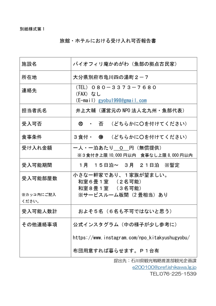 急きょですが、亀川2拠点を2次避難所登録(2024.1.9)