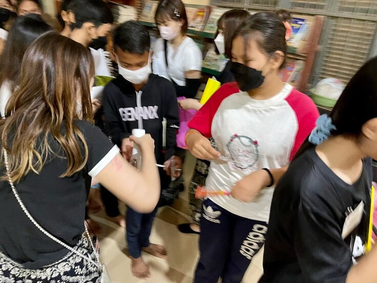 コロナ禍での現地ということで、ティーチング期間中は先生も生徒もマスク着用を義務化(カンボジアではマスク文化がなくなりつつありましたが、この期間は生徒にマスクを着用してもらうように声かけをしました)、マスクを持ってきていない生徒にはSTPCからマスクを提供、毎授業開始時にアルコール消毒の徹底、メンバーの健康管理のための毎朝の抗原検査代、などです。