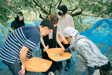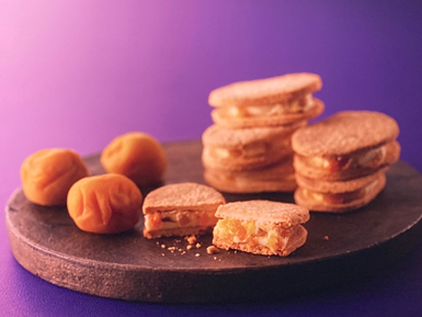 昨年5月から「黄金の梅」の美味しさを伝えるための商品づくりをしたいと、 試作に取り組んだようです。試行錯誤の末、梅酒梅を用いたスイーツが相性がよいと感じ、7月には福井県南越前町の梅農家さんを訪問して試作したバターサンドを食べていただいたところ大変好評だったようです。梅の収穫も手伝われたとか。