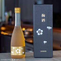 ESHIKOTO梅酒は「黄金の梅」のみを使用した梅酒。収穫時期を迎えた黄金の梅の梅林一帯の桃源郷を彷彿とさせる甘い香りがまるで余韻となって残ります。