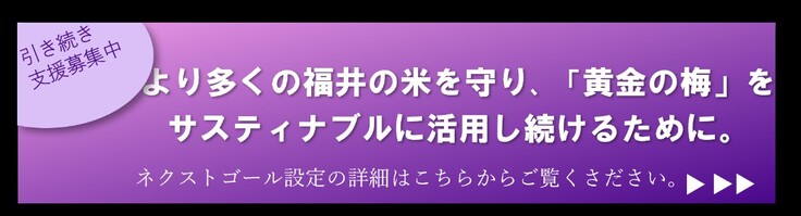 全国に名物、名産と言われるお菓子が存在します。福井県にも羽二重餅をはじめとした名産品がありますが、今回「福井の米」と「黄金の梅」を使用した新商品で福井県を代表する銘菓として育んでいきたい。 2024年春、北陸新幹線が福井・敦賀駅まで延伸するため、訪福客の増加が見込まれます。この商品が福井県だけに留まらず、全国の方々に知ってもらえる機会になると考えています。この商品には福井県産の秀逸な素材が使われています。黄金の梅をはじめとして、サブレには福井県産コシヒカリと福井県産大豆のオカラ、卵は福井県産米卵(米を飼料とした鶏卵)が使われており、素材と生産者も地元の皆様が関わってくださっています。より多くの方の手に渡ることで、福井県の特産品に注目が集まるきっかけにもなります。 福井県の魅力を、全国に伝えたいです。