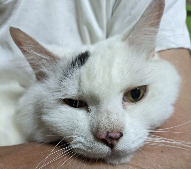 保護猫ちゃんはお日様の当たる所に移動して朝寝してました 気持ちよさそうです😊