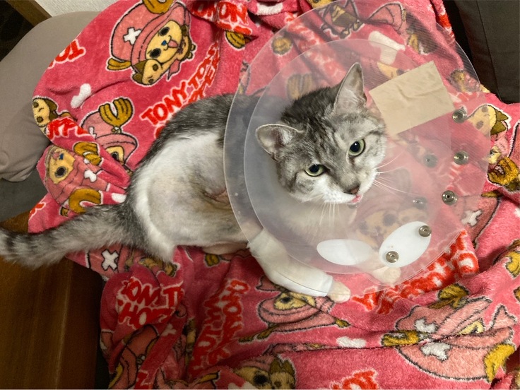 足の包帯も無くて良いそうですが、エリザベスカラーで引っ掻いたり、ぶつけてしまったりした時の保護のために必要なだけとのことでした。