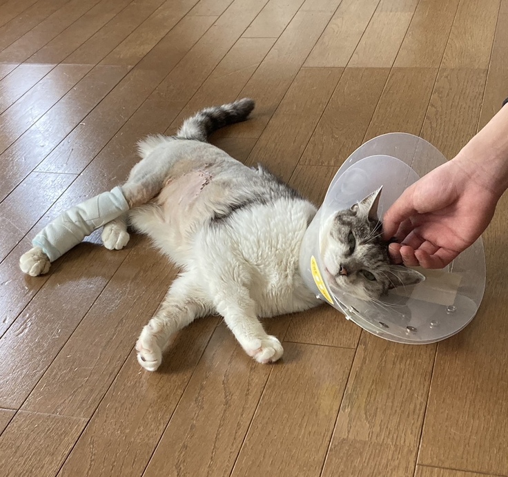 縫合部分に穴が開いていたとこを再縫合、痛かったのか待合室まで凄い鳴き声が響き渡りました。