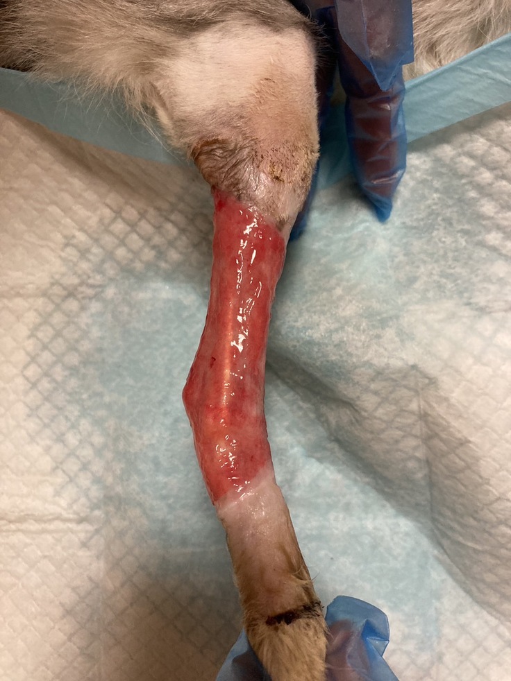 こんなにキレイなハッピーの足を見たのは初めてです。まだ壊死部分も残っていますがいずれ剥がれ落ちてキレイになるそうです。