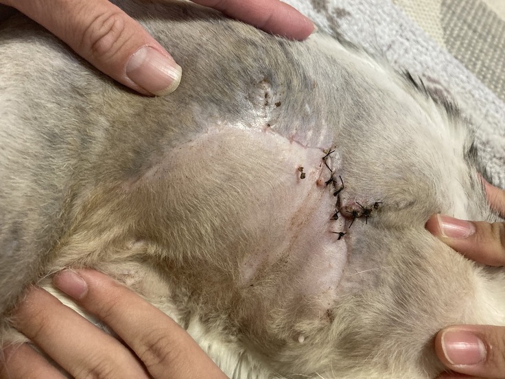 お腹の縫合部分もとてもキレイにくっついています。