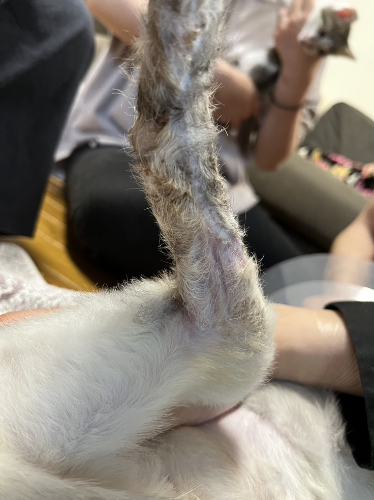 ハッピーはカラーを外すことを覚え一日に4〜5回外してしまいますが、ここまで傷口が治癒していて痒みも少ないようで噛んだ形跡もありません。