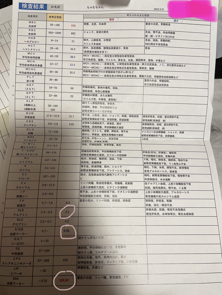 血液検査の結果は、かなりちゃむがつらいことが分かりました。