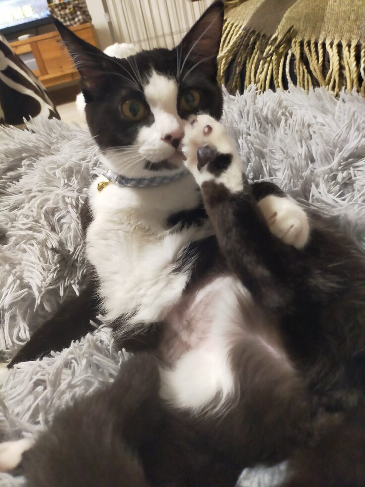 (とても保護猫とは思えない警戒心0の人懐っこい子です)
