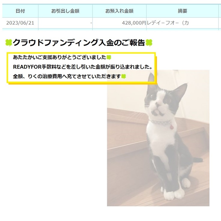 ご支援よろしくお願いします!! 感謝のメール、FIP治療の経過をお送りいたします。