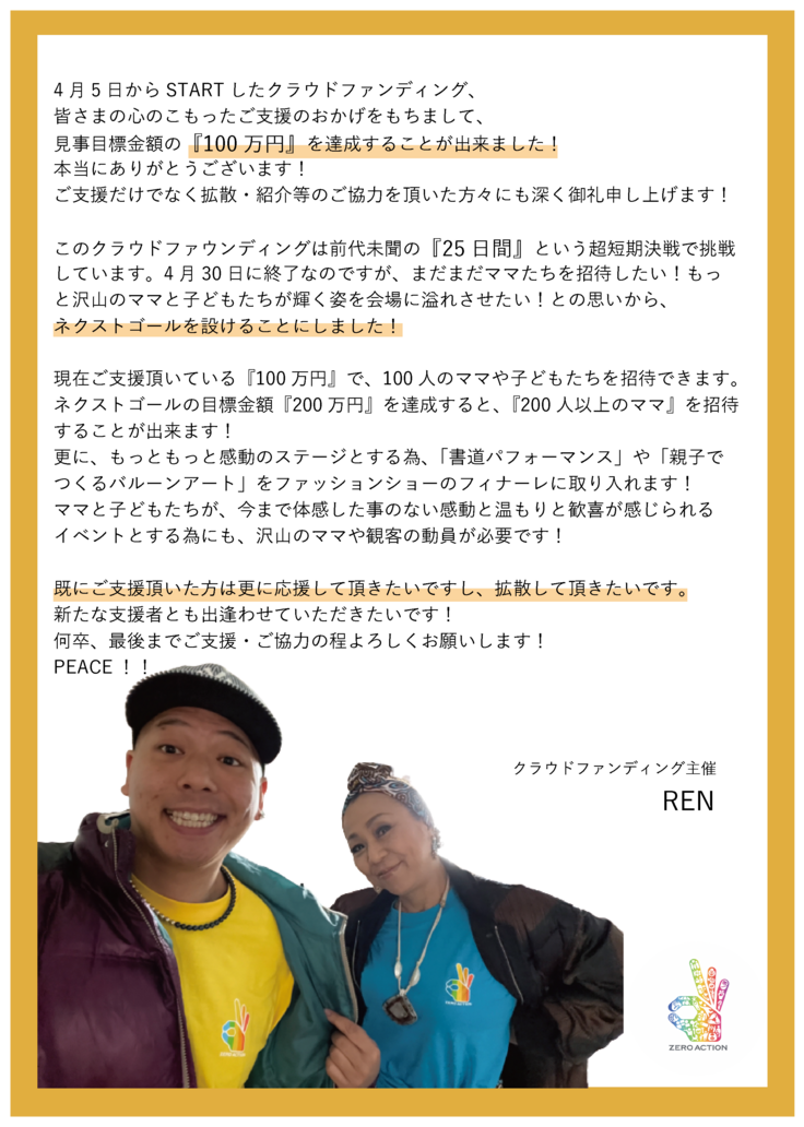 母のTAEKOは発起人として熱い思いを伝え、私は運営のサポートをし、幅広い世代から多くの共感を集める!