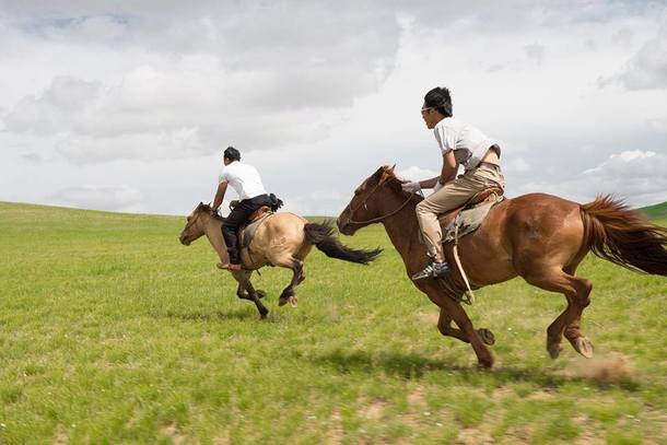 モンゴルの大草原を馬に乗って駆け抜け、