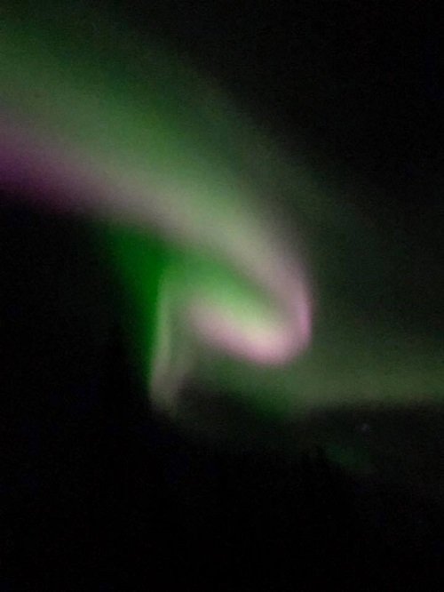 みんなで外に出たら、なんと、オーロラが!