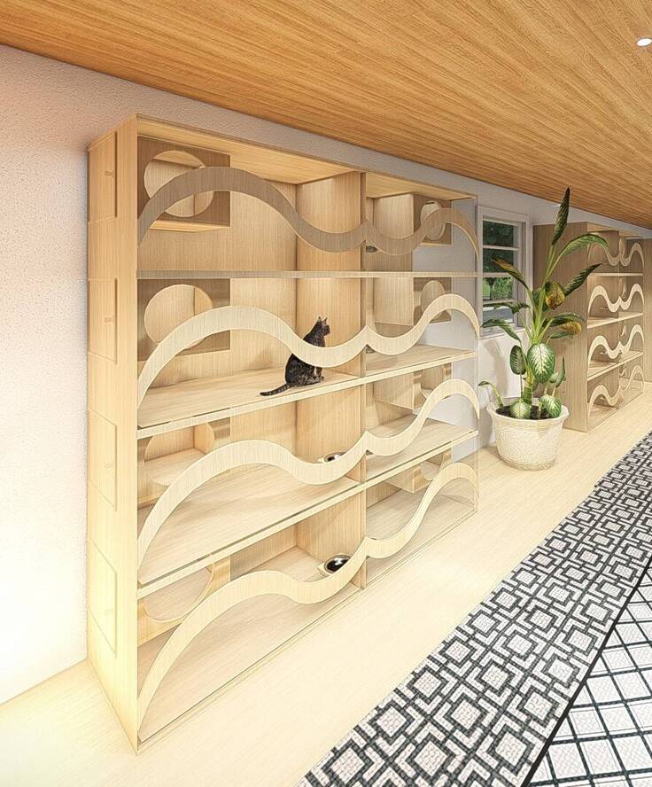 そして、横に広いと運動しやすくなることやスタッフも見やすくなって状況の把握がしやすくなるということからこの形にしたのですが、動物愛護センター規定の形やサイズにすることが許認可取得上必須となっている状況です。