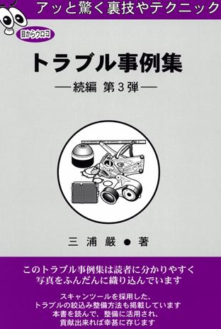 アッと驚く裏技やテクニック トラブル事例集 第3弾定価:¥ 2,500 税込送料:¥ 200 税込書籍について好評の第1弾、第2弾に続き、2年振りに第3弾が登場!第3弾は読者に分かりやすく写真をふんだんに織り込んでおり、 スキャンツールを採用した、トラブルの絞込み整備方法も掲載しています。発行日: 平成23年11月発行サイズ/ページ数: A5版 240ページ