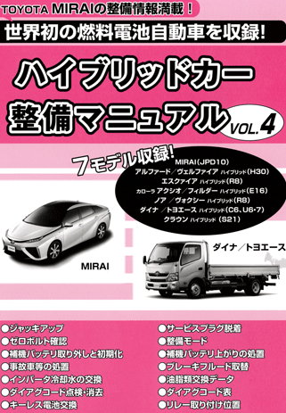 ハイブリッドカー整備マニュアル VOL.4書籍について前回に比べページ数が増量。HV車の整備をする為に必要な内容がより詳しく見やすい仕様となっている。また今回は、ダイナ/トヨエースといった小型トラックや世界発の燃料電気自動車MIRAIも収録している。本書は…ハイブリッドカー整備マニュアルVOL.1~3の続編でHV車の整備を素早く、かつ、的確に行う為に必要となる基本的な情報を、車種別にまとめたものである。発行日: 平成27年8月発行ISBN: ―サイズ/ページ数: A4版 224ページ