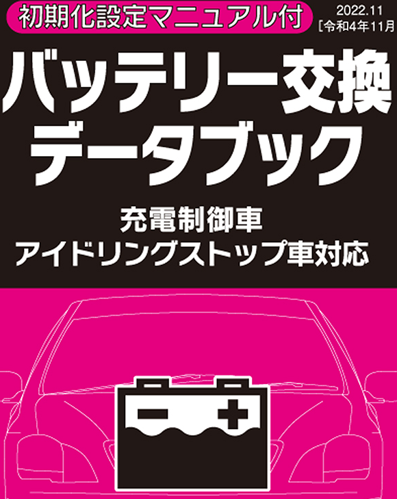 バッテリー交換データブック(2022.11)書籍について車種別の搭載バッテリーサイズ、制御システム、初期化が分かる書籍!《主な収録内容》① 搭載バッテリ-サイズ(エンジン別、生産年式別)② 充電制御機能(制御付きは〇マークで表示) ③ アイドリングストップ機能(機能付きは○マークで表示)④ 備考(寒冷地仕様車やOP設定によりサイズが異なる場合は表記)⑤ バッテリ交換後の初期化(メーカー別/作業手順方法を収録) 収録モデル過去20年分(平成14年1月~令和4年8月)に生産されていた車両(車種により多少前後します)発行日: 令和4年11月発行ISBN: ―サイズ/ページ数: A5版 220ページ